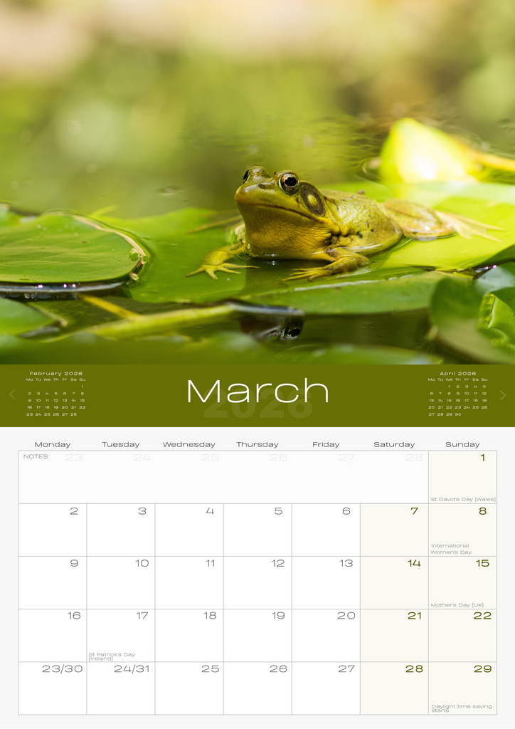 • SPACE FOR NOTES – Clear monthly layout with ample space for notes, birthdays, reminders, and appointments. This wildlife calendar 2026 UK keeps you organised while showcasing stunning nature photography.