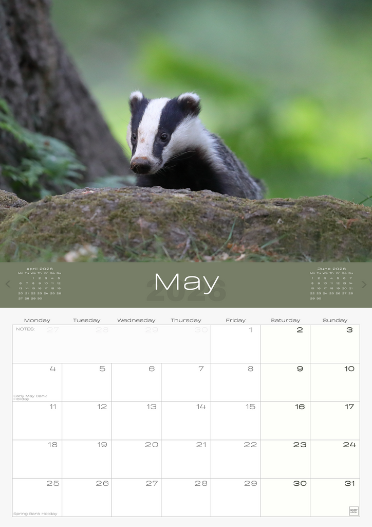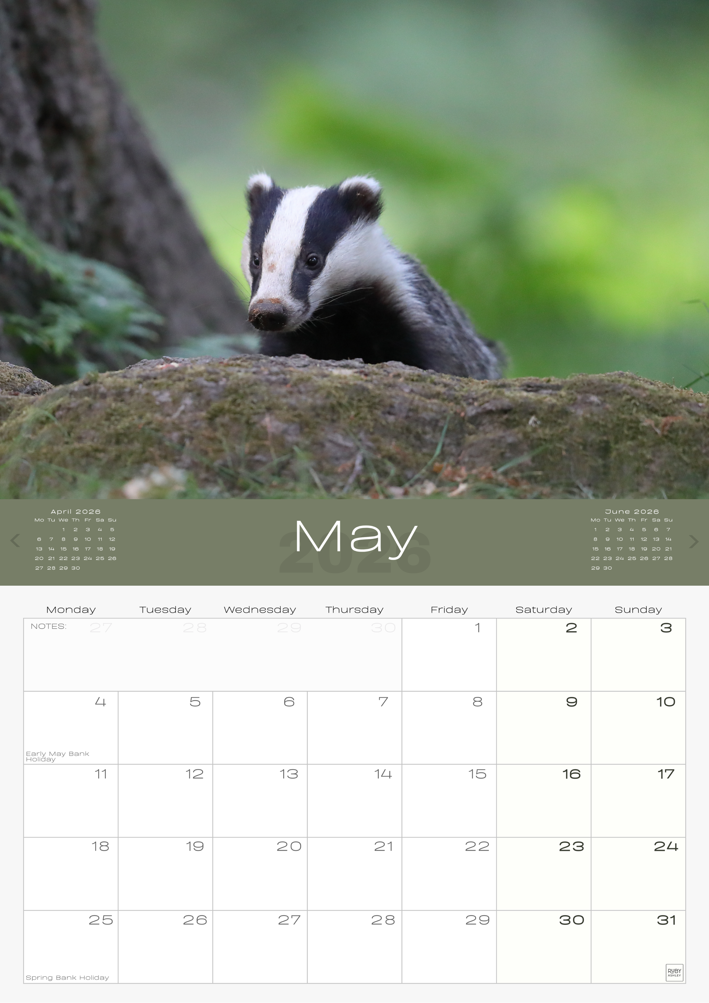 • 2026 CALENDAR MONTH TO VIEW – Sized A4 when closed, expanding to A3 when opened. Each month displays a full wildlife image above with 2026 month-to-view grid below. Perfect for anyone seeking a British wildlife calendar 2026.