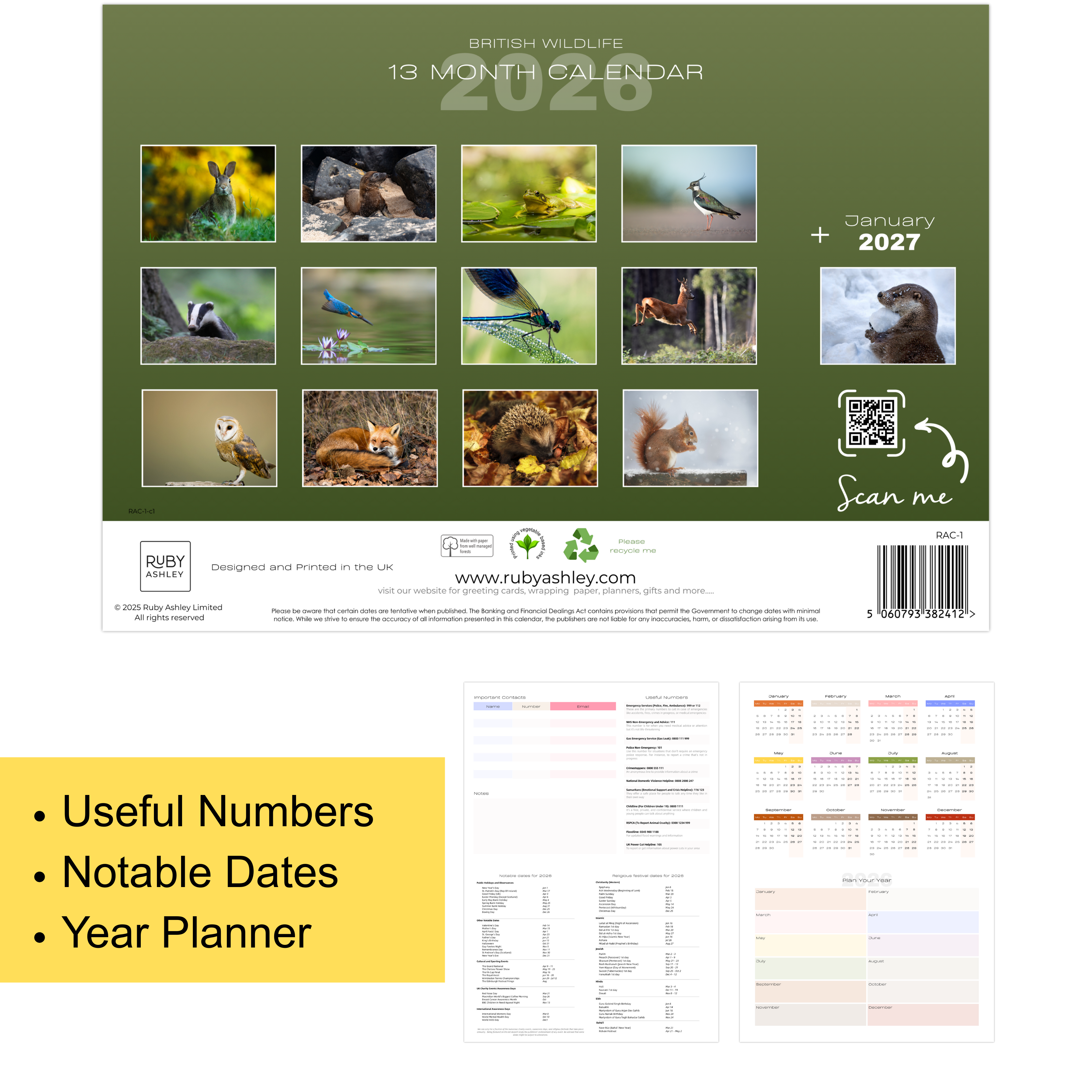 • QUALITY PRINT & PAPER – Professionally printed in the UK with eco-friendly inks on premium paper. A 2026 wall calendar UK edition that blends durability with beautiful British wildlife photography.
