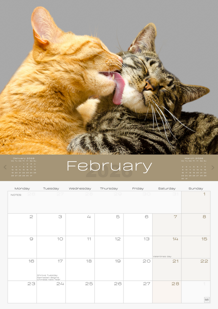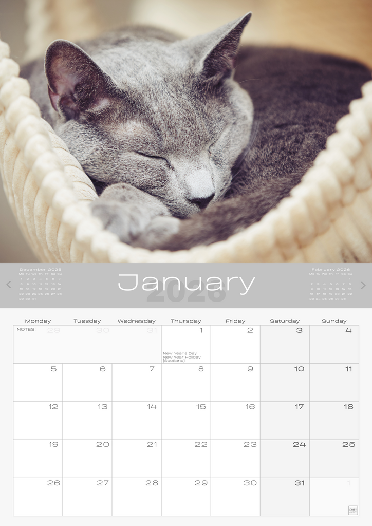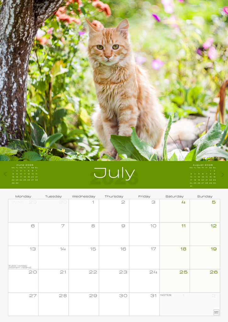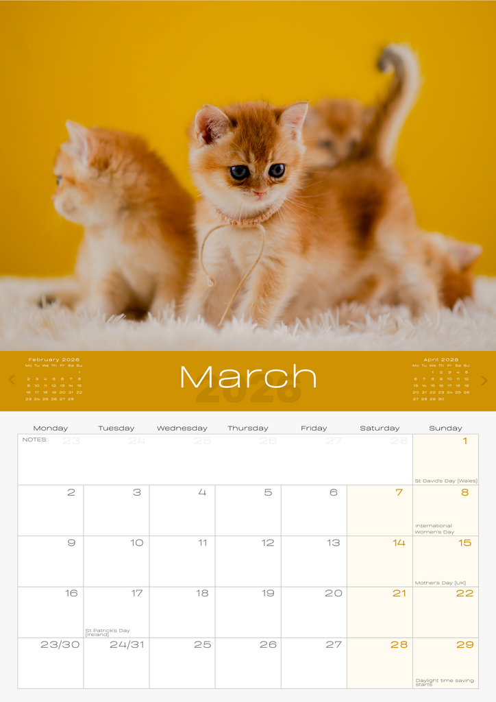 • IMPORTANT CONTACTS: Includes space for your important contacts like your vet, cat sitter, and family. This 2026 wall calendar UK edition doubles as a practical organiser.