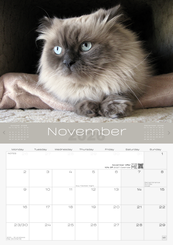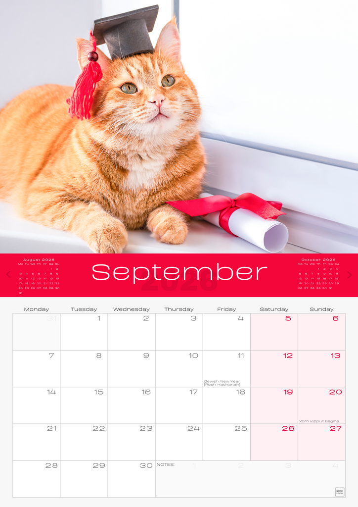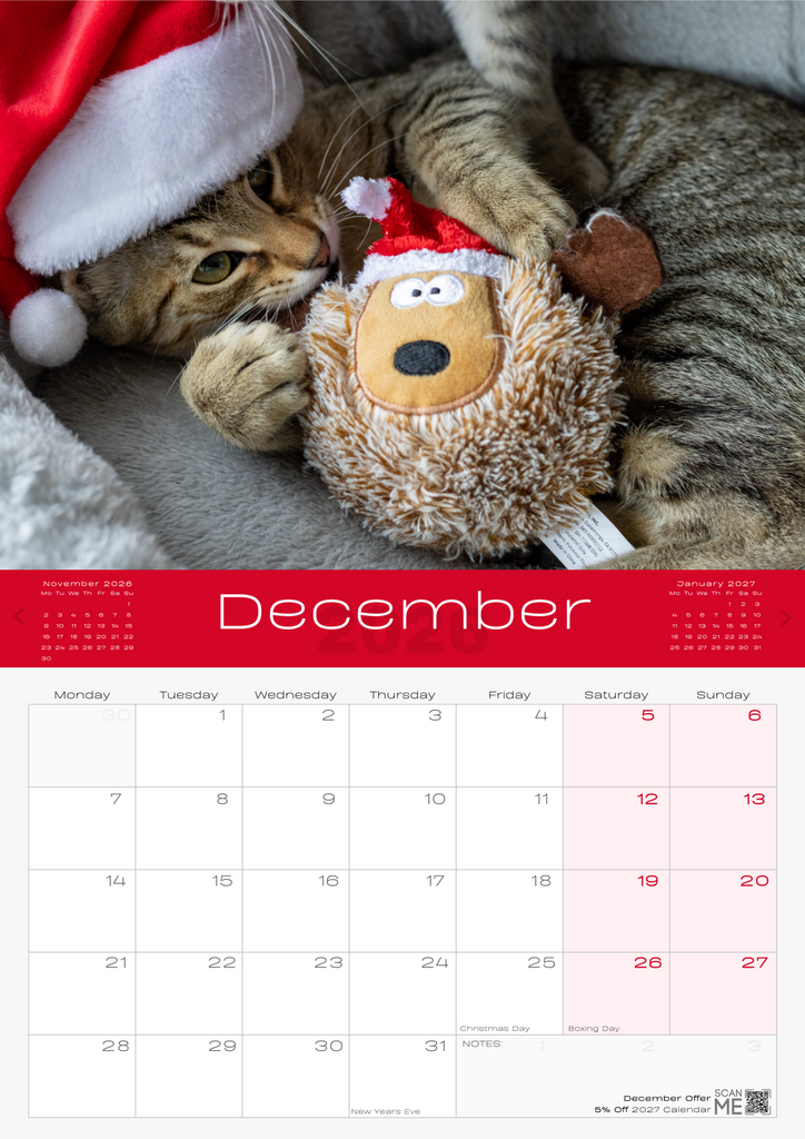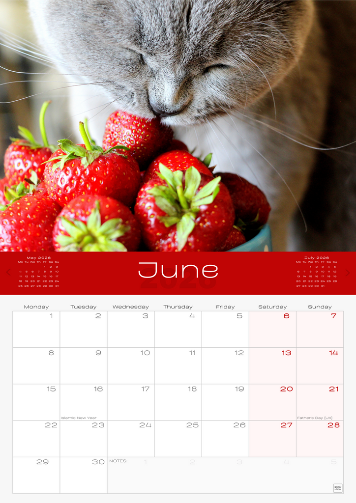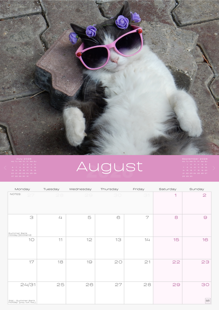 • IMPORTANT CONTACTS: Includes space for your important contacts like your vet, cat sitter, and family. This 2026 wall calendar UK edition doubles as a practical organiser.