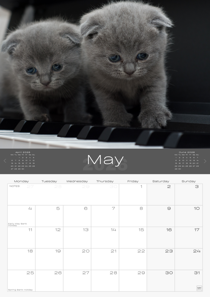 • READY TO HANG – Pre-punched hole makes this cat & kitten wall calendar 2026 UK edition easy to display at home, in the office, or as a gift.