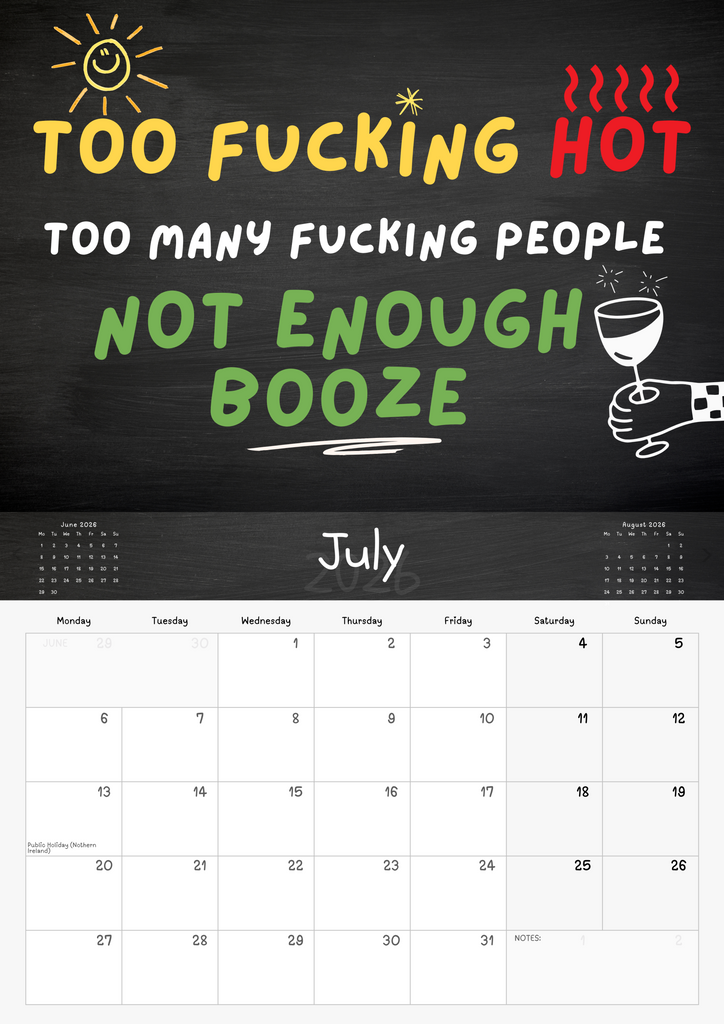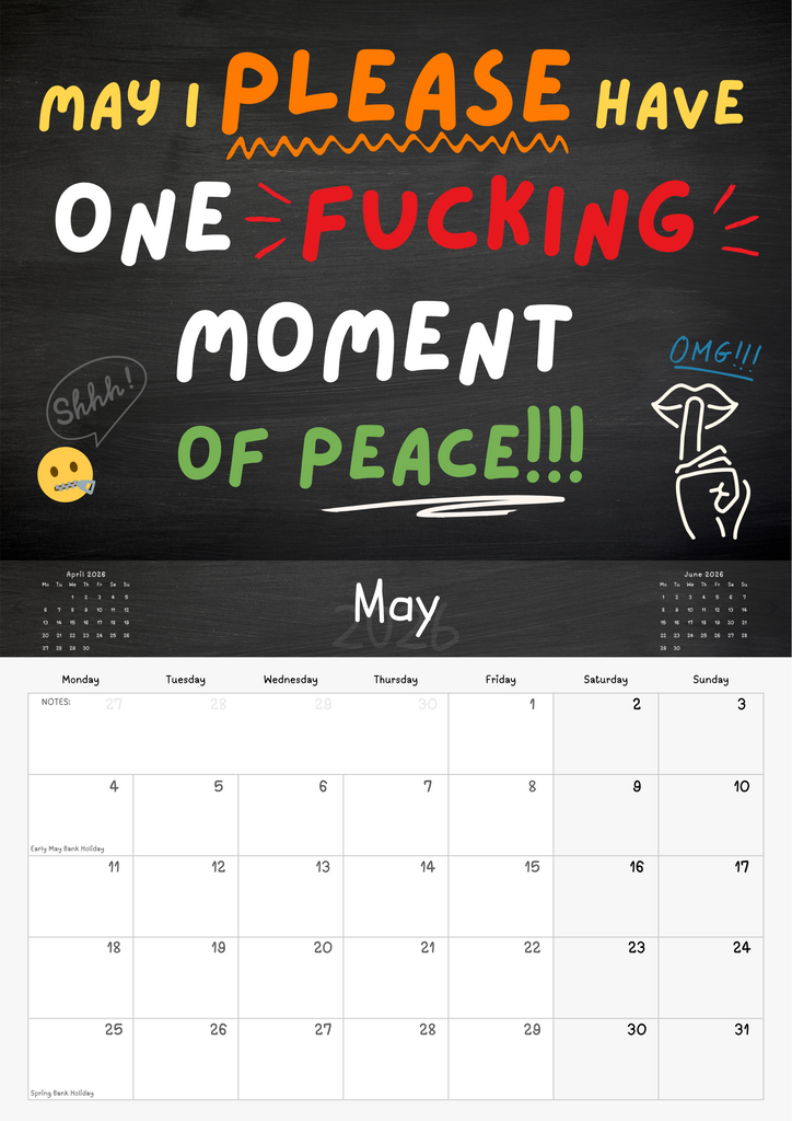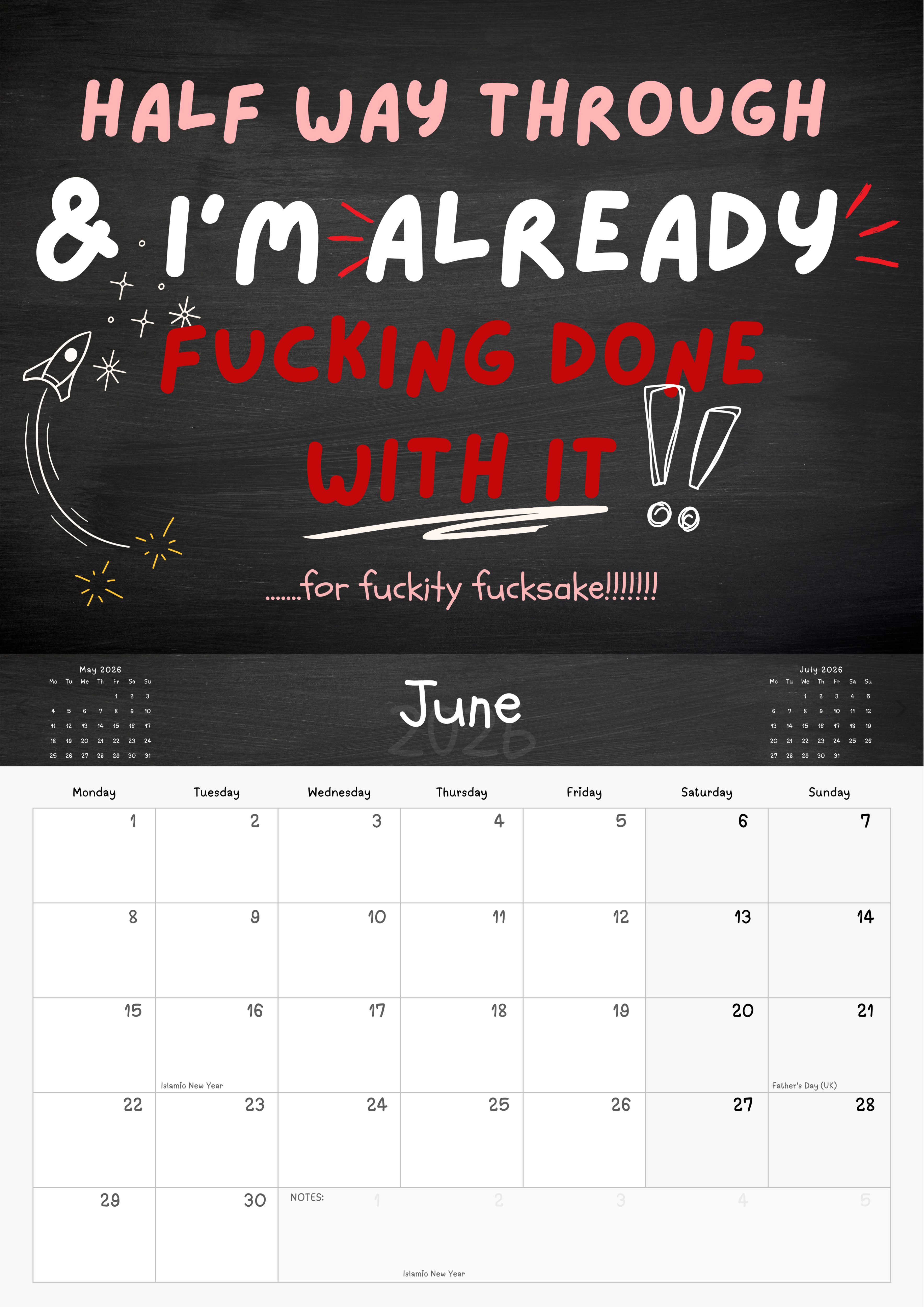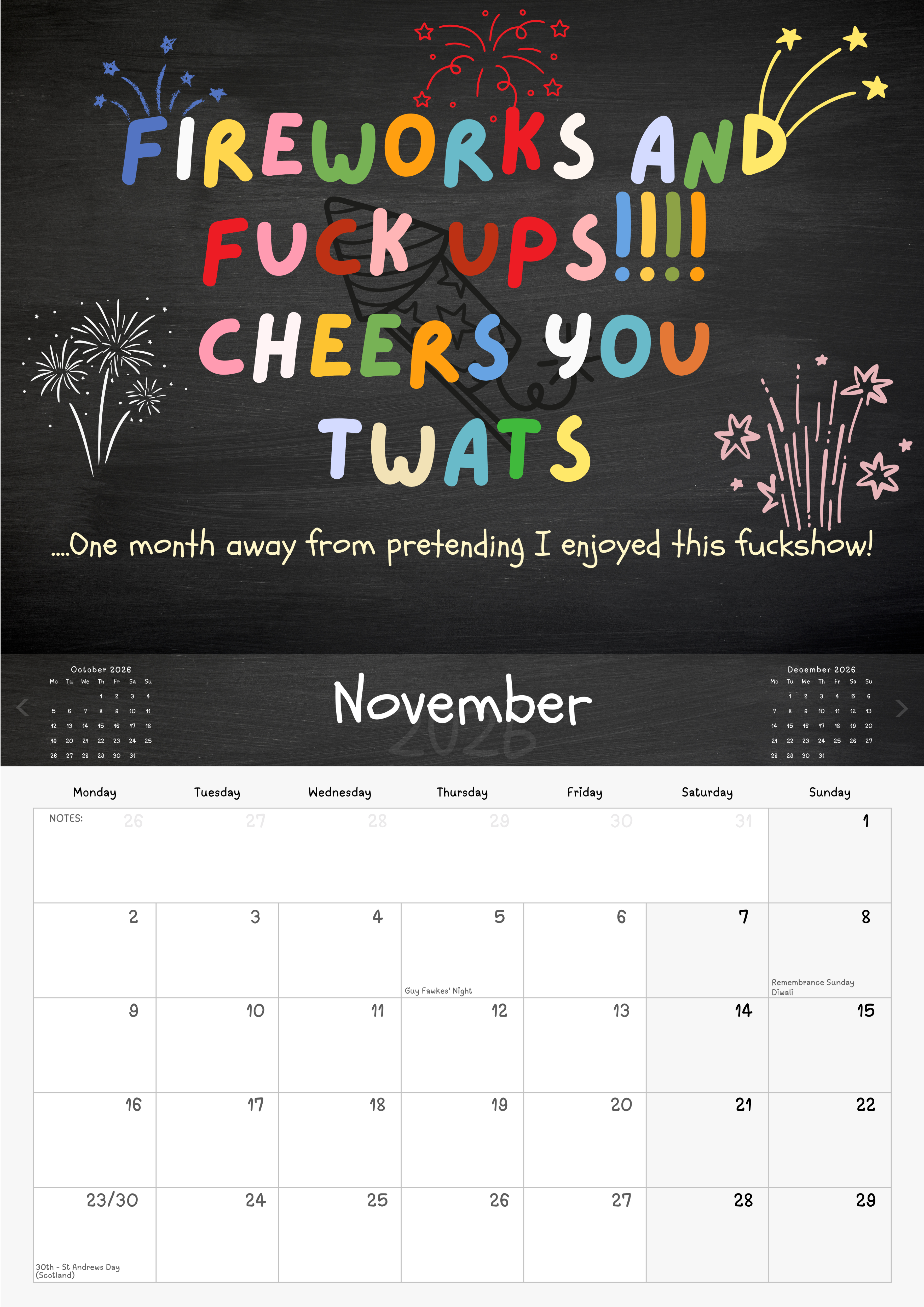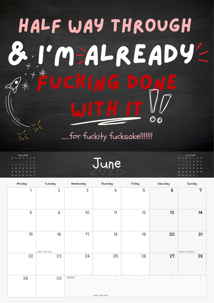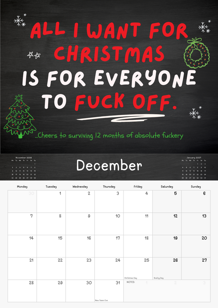 • SPACE FOR NOTES – Ample room for birthdays, appointments, and reminders. Stay organised with a touch of bad language.