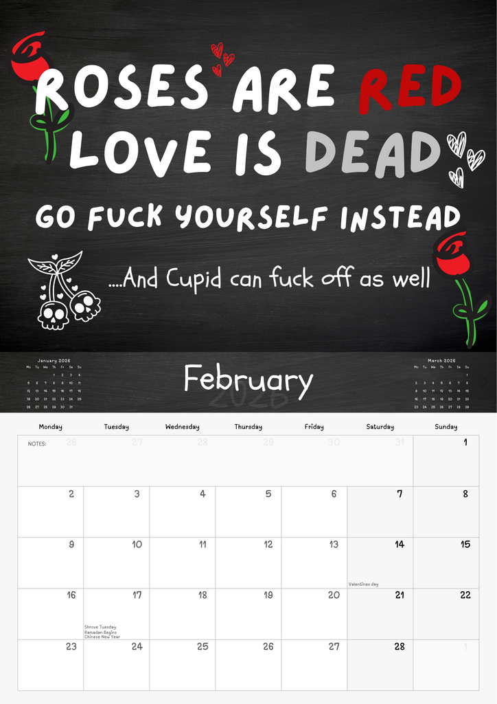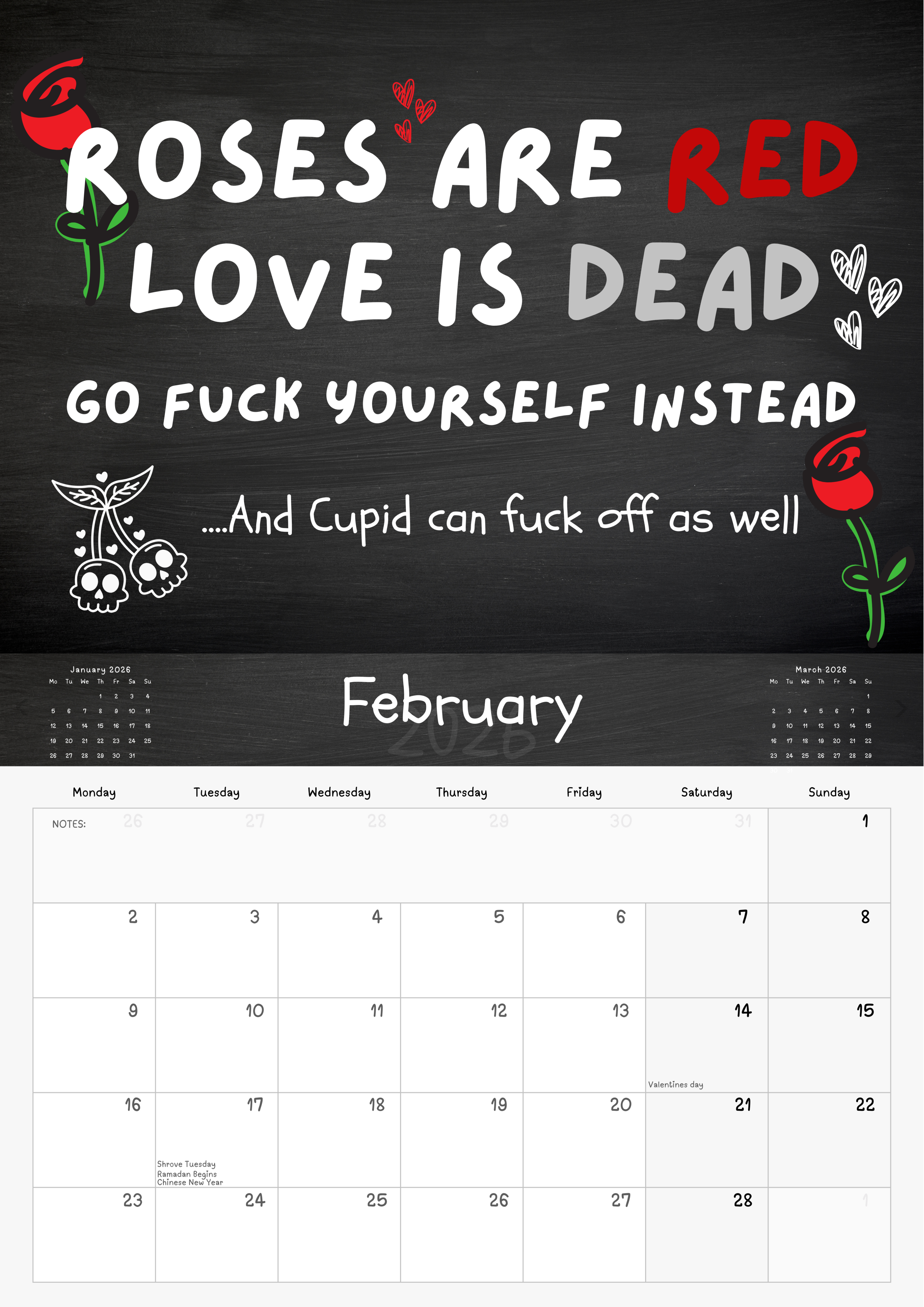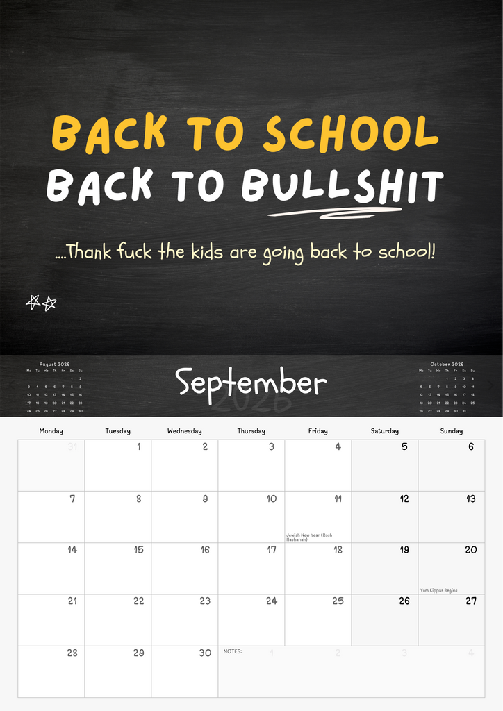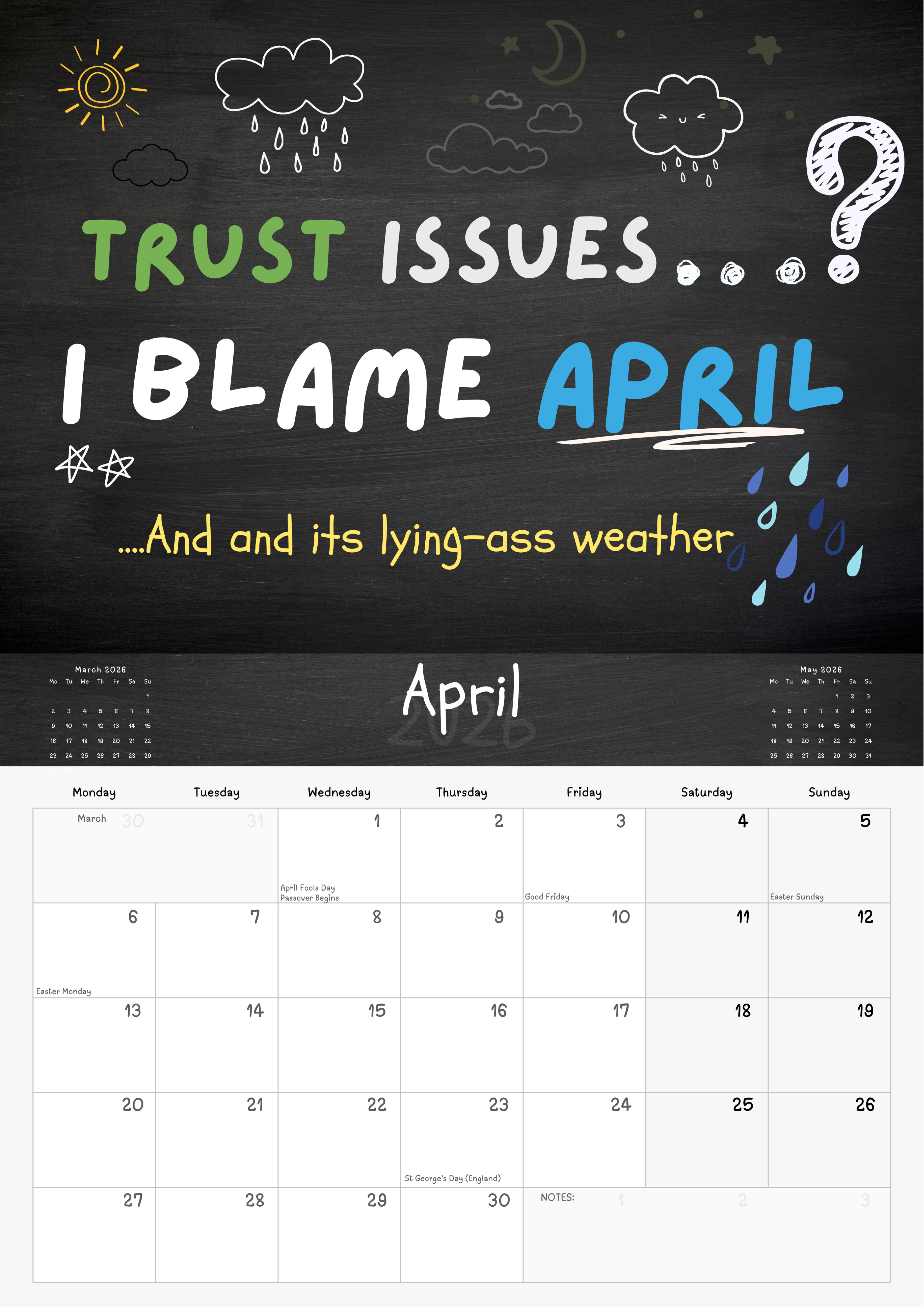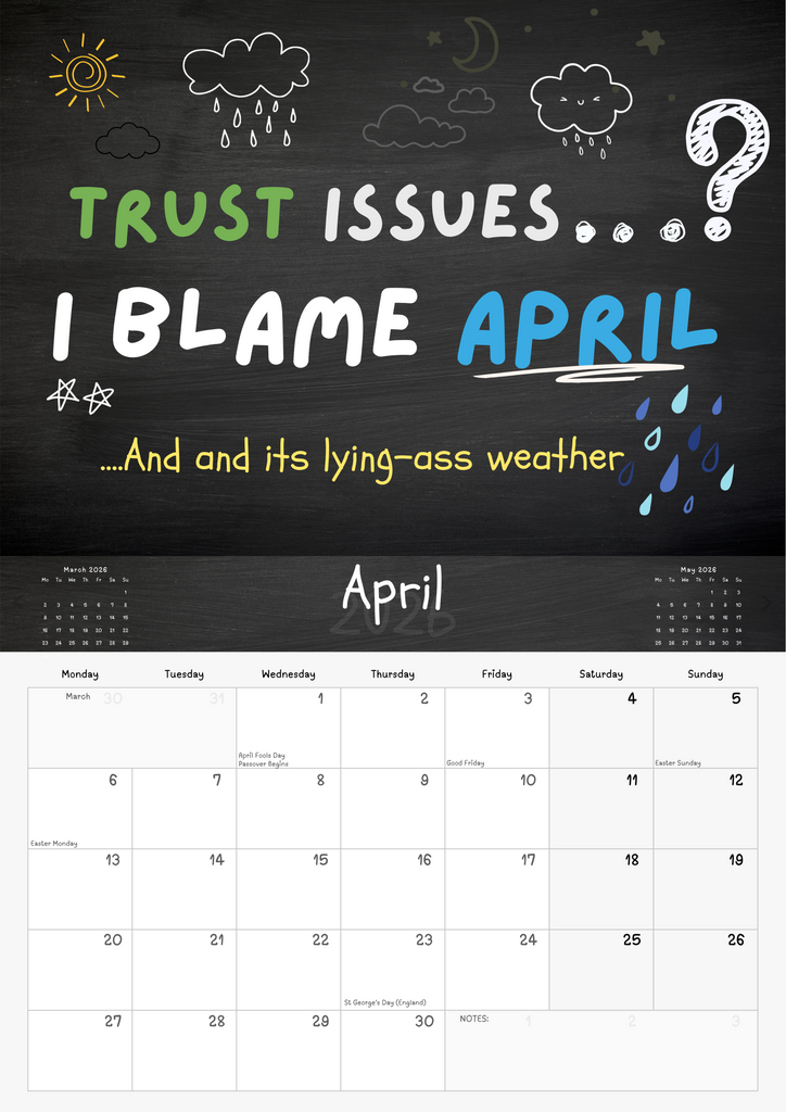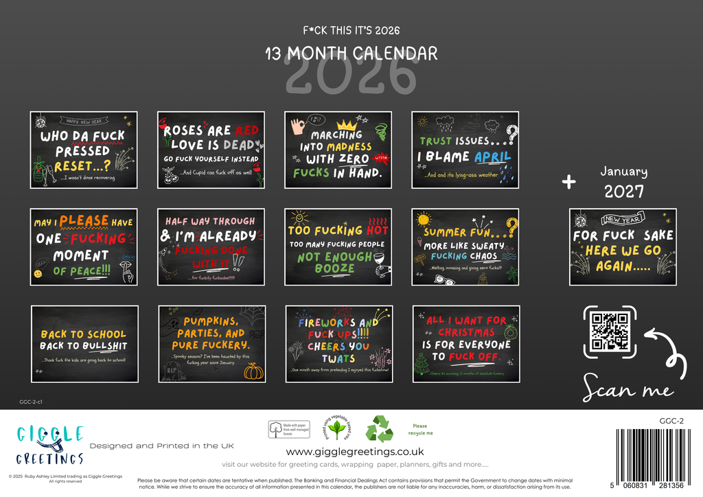 • SPACE FOR NOTES – Ample room for birthdays, appointments, and reminders. Stay organised with a touch of bad language.